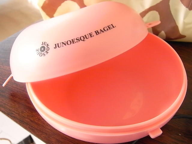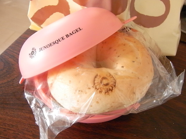 2011年04月03日 JUNOESQUE BAGEL-ジュノエスクベーグルのベーグルケースを買いました! ベーグル大好きなハツなのですが、最近ホームベーカリーでベーグル作ったりしています。そんな中、ジュノエスクベーグルでベーグルケースが売られているのを発見!即購入してしまいました。ベーグル1個分がまるっと入るサイズ。ちょっと大きめなので、サンドも入ると思います。色はブルーやイエローもありましたよ。早速おうちで焼いたベーグルを入れて持って行きたいと思います♪ 「┗【カフェ・バー】新宿・代々木・大久保」カテゴリの最新記事 「【お買い物】」カテゴリの最新記事