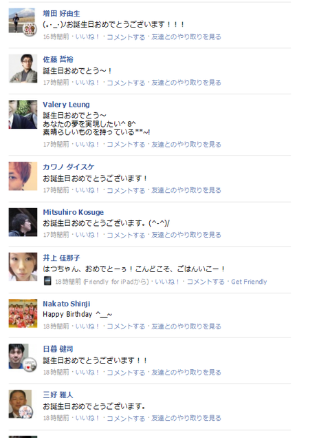 facebookでは、本当にいろいろなお方からお祝い頂きました!