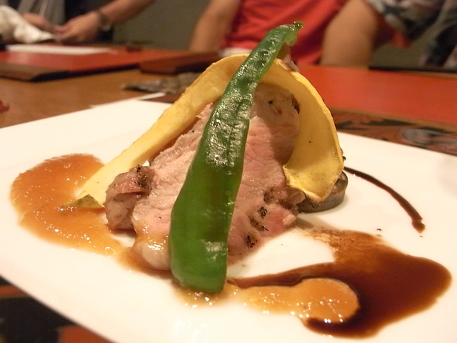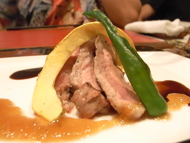 ▼「白金豚の炭火焼 お野菜とフルーツのソース」