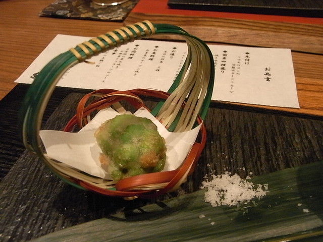 枝豆と雲丹のかき揚げ。大好きな雲丹の入ったかき揚げ。