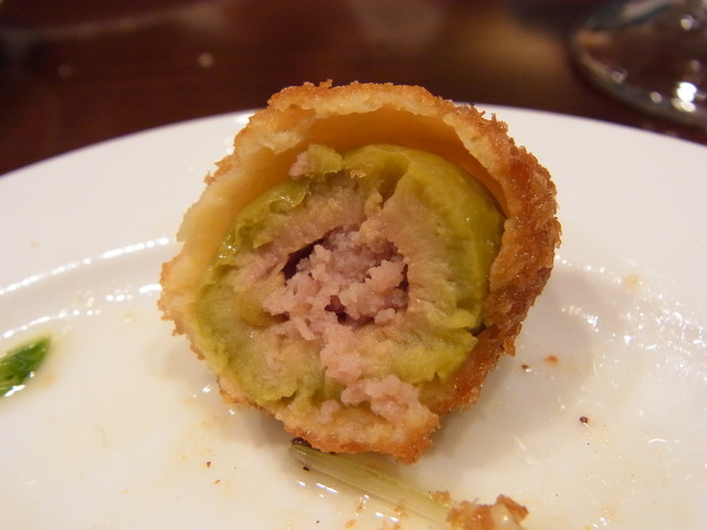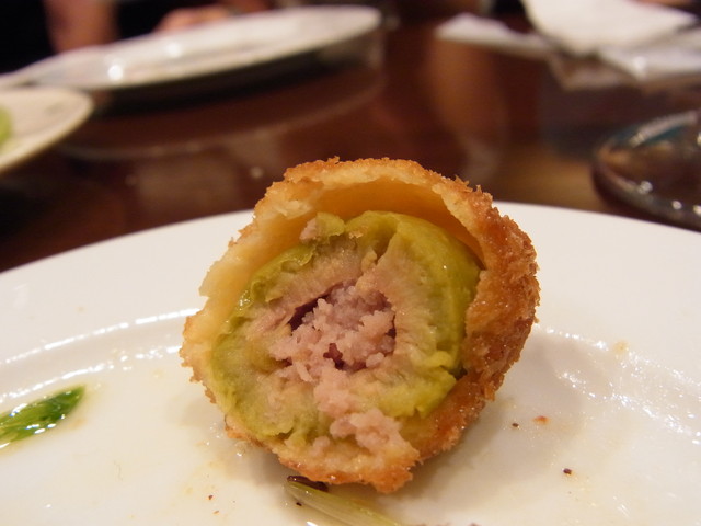 続いて、お料理は、オリーブの肉詰めを揚げたもの。