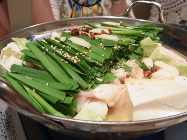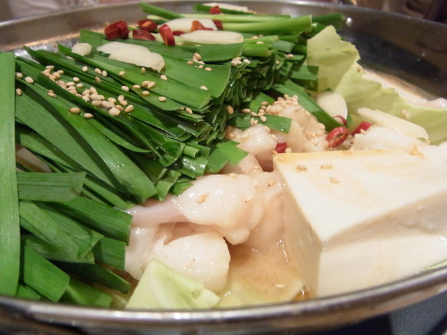 お豆腐にキャベツにニラ、そしてモツが入った定番のモツ鍋です。