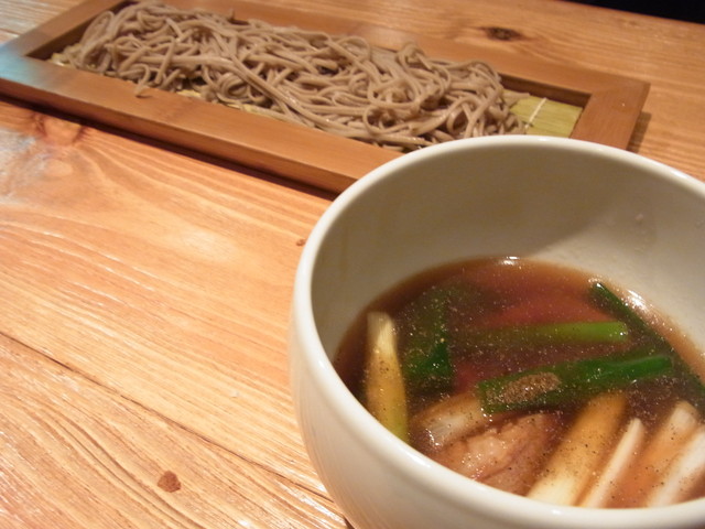 太めのお蕎麦をあったかいおつゆにつけて。ほっこりしますね。