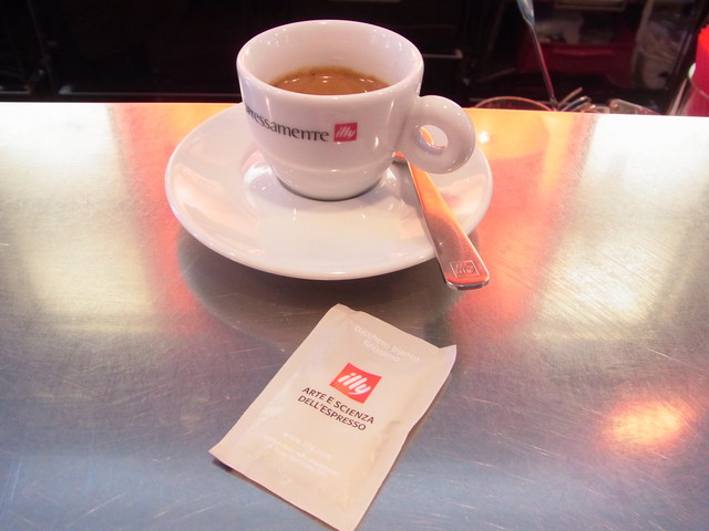できたてのエスプレッソ。お砂糖をたっぷり入れて、ぐいっと飲みます!