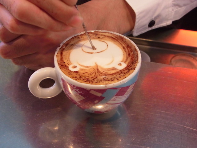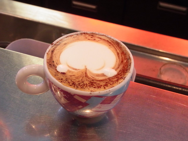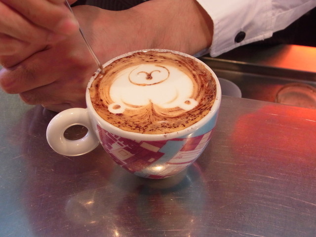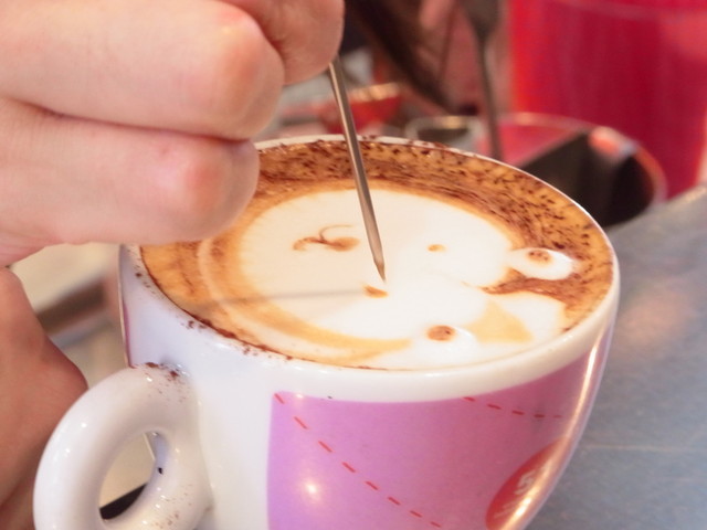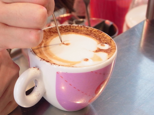 続いて、今度はハツから、ラテアートに挑戦。