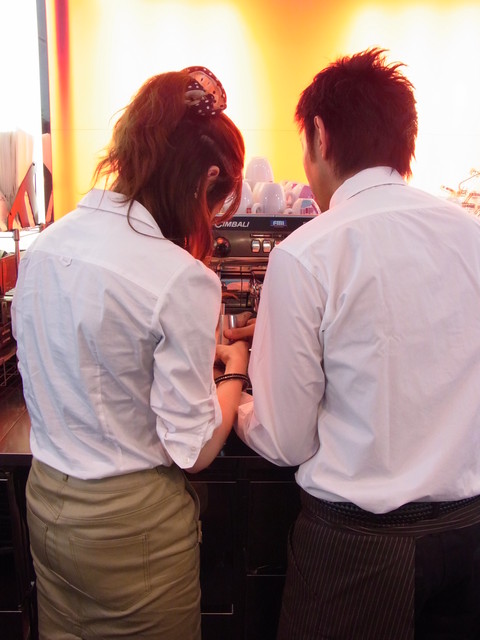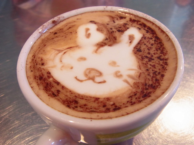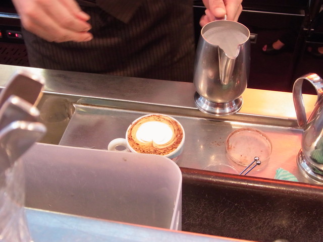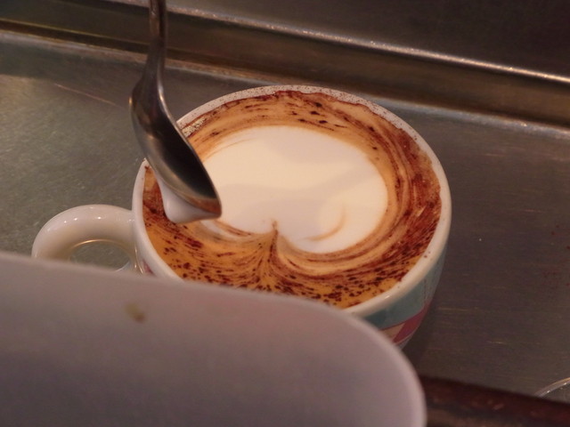 ミルクをほわほわにあたためて、エスプレッソに注いでゆきます。