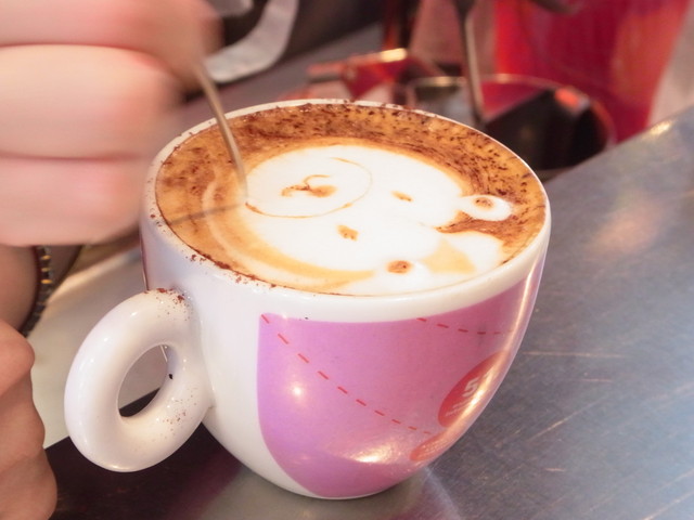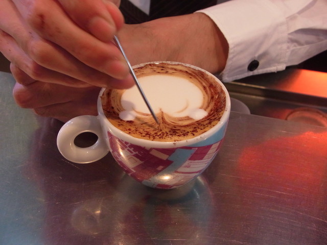 エスプレッソの飲み方や鯵を勉強したところで、いよいよラテアートに挑戦!