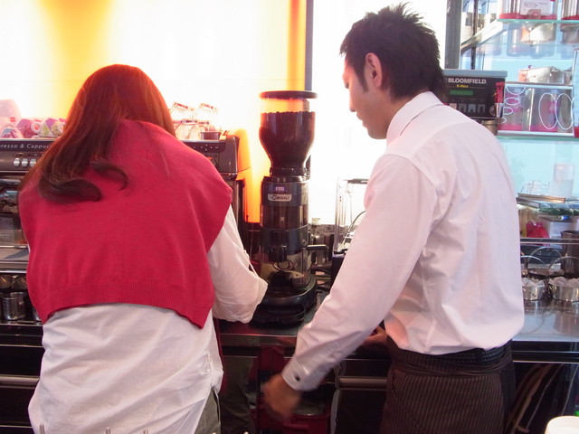まずは、エスプレッソ作りになべひさんがチャレンジ。