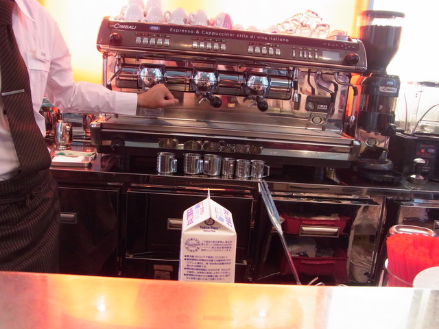 こんなに大きなエスプレッソマシーンで作ります。