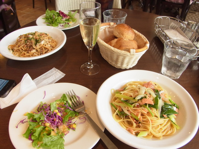 サラダやパンがついてお値段1000〜1200円。ランチのみ、ワインが300円で頂けます。