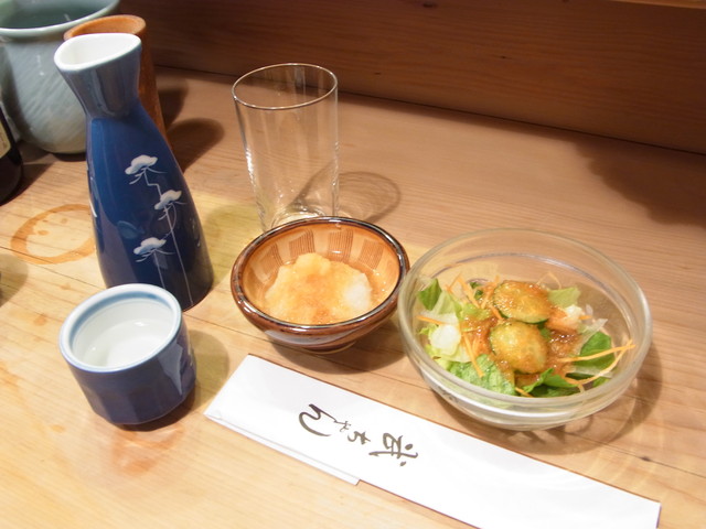それに、ミニサラダ、大根おろし、鶏スープが付いてきます。
