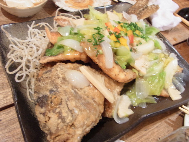 真鯛の豪快姿揚げ〜春野菜の具たくさんあんかけ〜です。