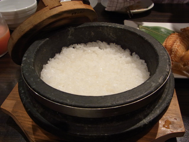 オーダーを頂いてから、1つ1つ炊き始める石焼の釜飯。