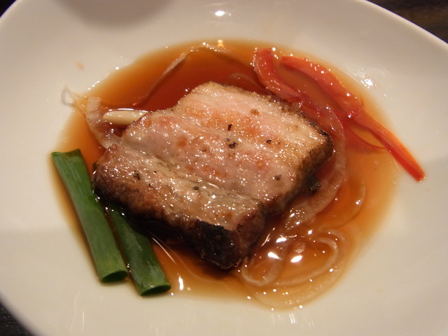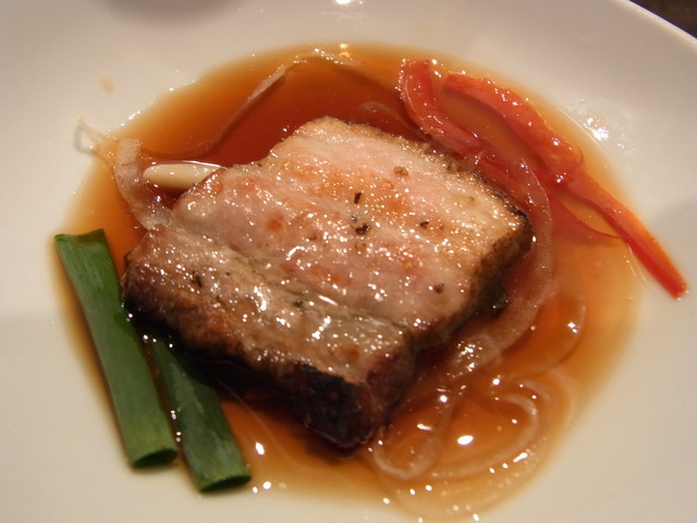 ブランド豚(東京ナチュラルポーク)の三枚肉を熟成したワインソースに一晩漬け、