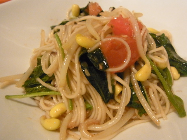 太めの素麺にトマトが入っているのは前からかわらず。さっぱりとした一品です。