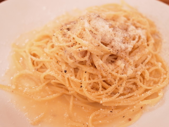 ▼「カチョ エ ペペ パルメザンチーズとブラックペッパーのスパゲティーニ」