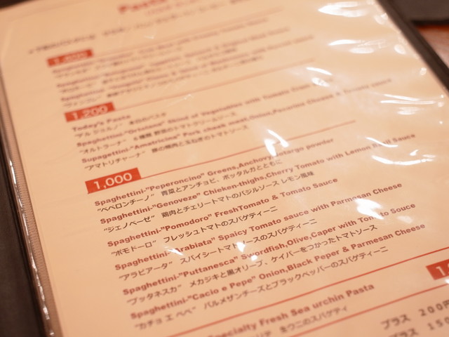 パスタの種類が多くてびっくり〜。1,000円〜1,500円で10種類以上のパスタがありました。