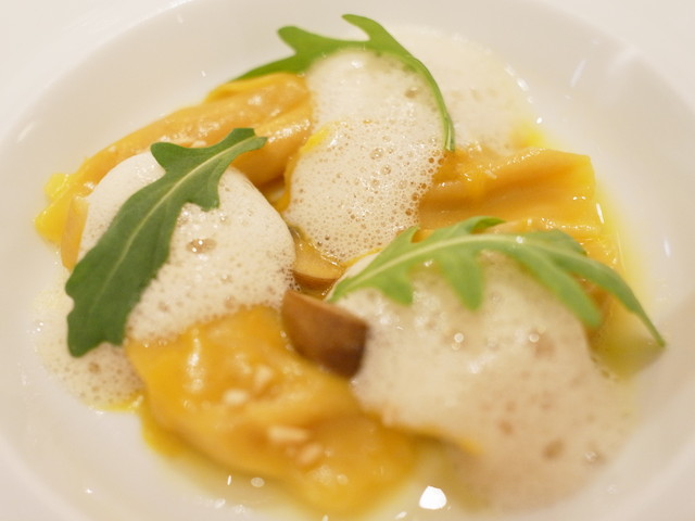 ▼「ローストバターナッツとカボチャのアニョロッティ ヘーゼルナッツを添えて」