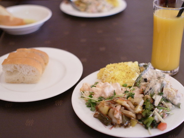 サラダも数種類、たまご料理ポテサラ、バケットもありました。
