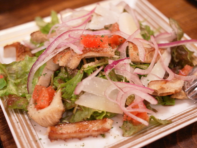 カリっと焼かれたトリッパとさっぱりサラダが相性良い。