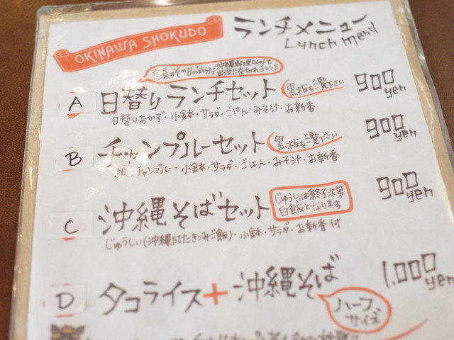 ランチメニューはこちら。日替わりとチャンプルーは黒板を、と。