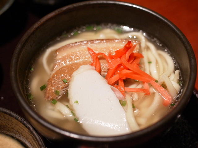 こちらはハーフサイズの沖縄そば。ちゃんとお肉も入ってる。