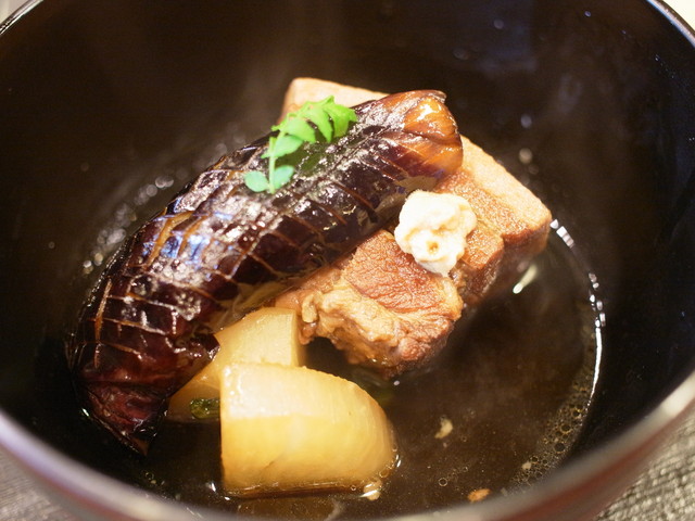 角煮は大きな塊肉に優しいつゆの味がしっかり浸み込む。