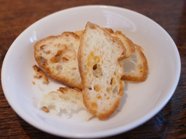 最初に出てきたのは、カリカリの焼かれたパン。というか、ラスク?