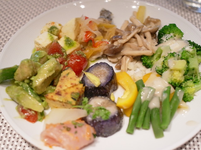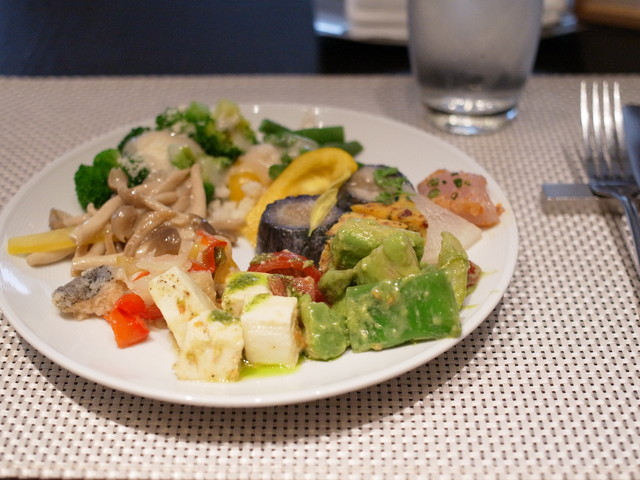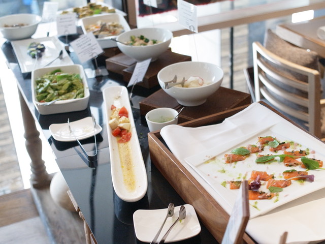 中央のビュッフェ台はこんな感じ。そこまで広くないですが色々な前菜が揃ってます!
