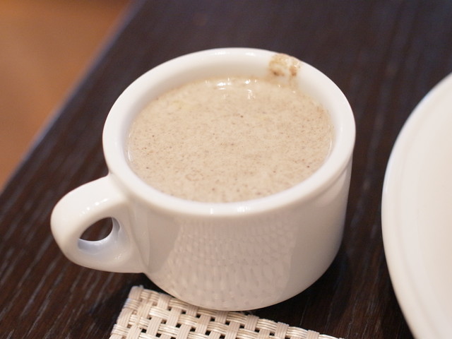 スープはブラウンマッシュルームのポタージュ。これがとっても好みだった!