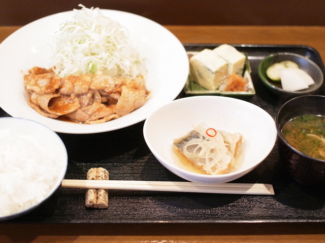 がっつり食べたかったので、豚バラのしょうが焼きをチョイス。