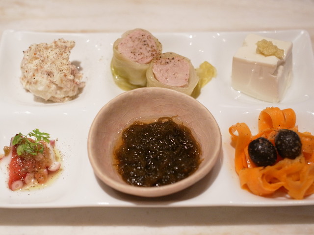 ランチには6種類の前菜プレートがセットです。