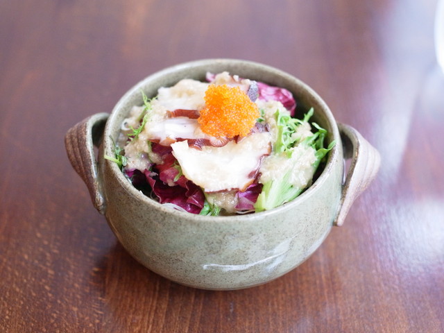 蛸ととびっこが入ったサラダ、豪華ですね!ドレッシングも美味しかったです。