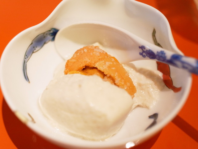 もちもち食感の山芋豆腐に大きな雲丹、そして塩の食感と加減もちょうどいい感じ。