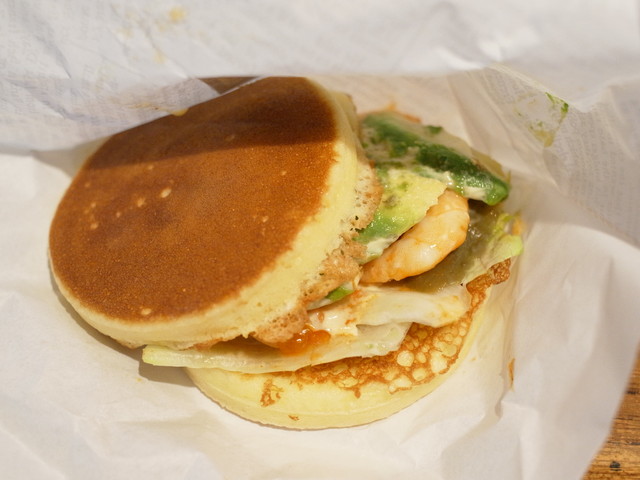 ハツは、アボカドシュリンプのパンケーキサンドをチョイス。