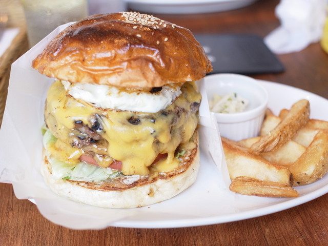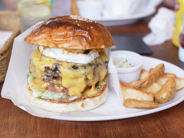 お待ちかねのダブルパティチーズバーガー・フライドエッグトッピング!
