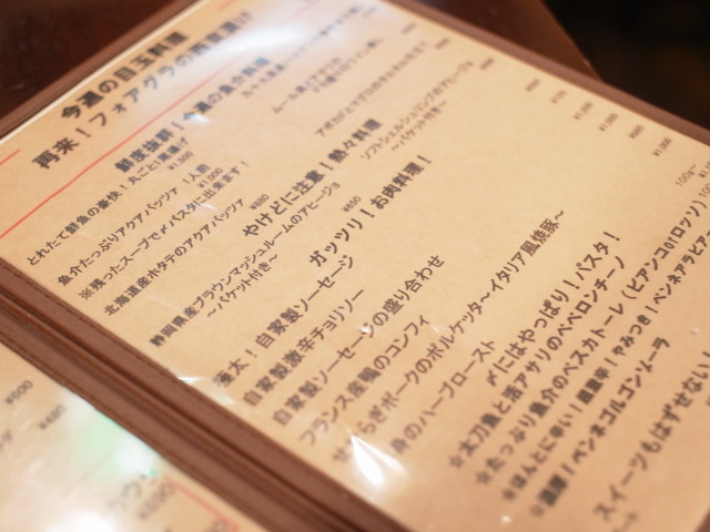 フォアグラやがっつりお肉、パスタなどなど揃ってます。