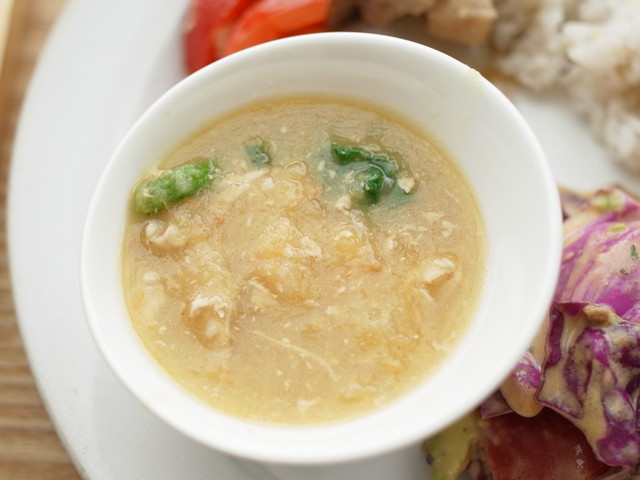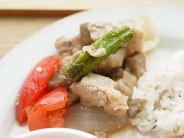 10種類くらいあるお惣菜とメインの中から好きなものを3種類チョイスするスタイル。