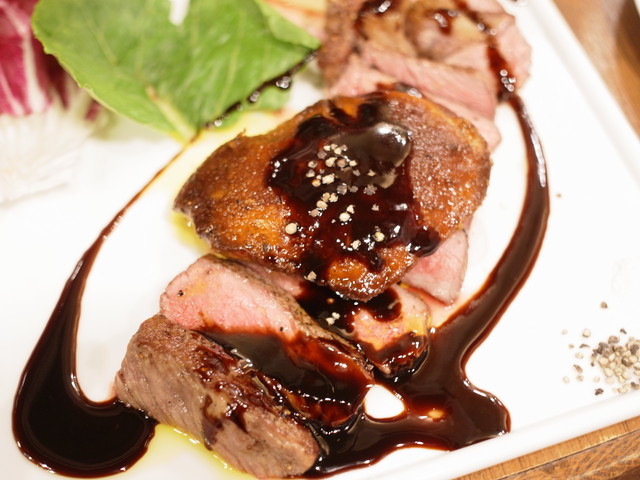 濃厚なバルサミコのソースにがっつりお肉、そしてとろけるフォアグラ。