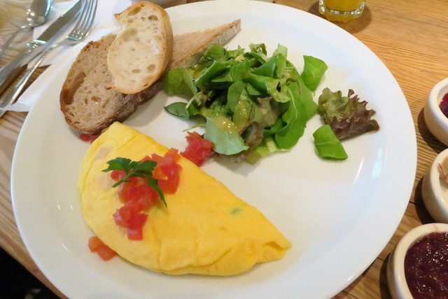ふんわり焼かれたオムレツにはチーズが入って、とろーりとろけます。