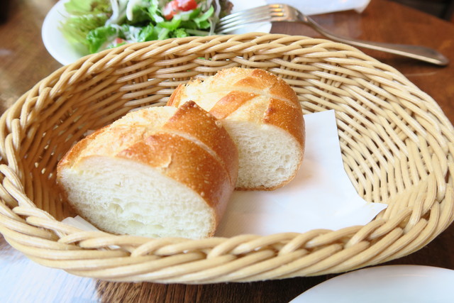 ランチにはパンとサラダがセットです。