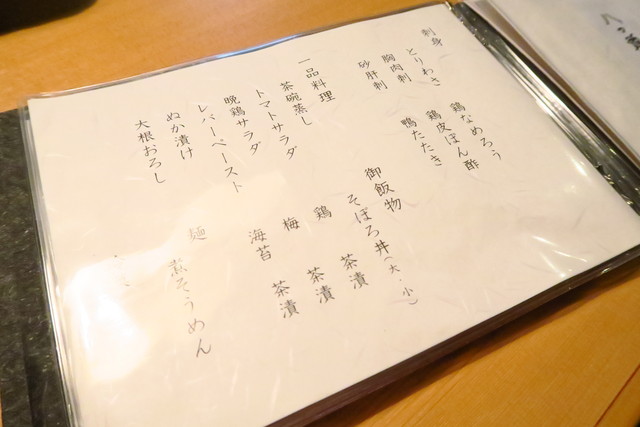 お料理は、焼鳥メインですが、それ以外にも鶏を使った色々なメニューがそろっています。