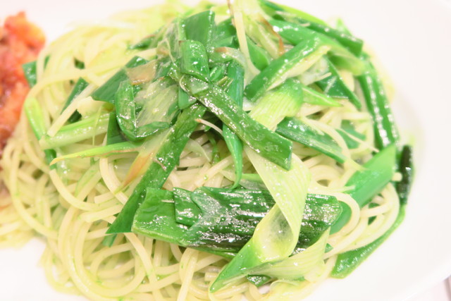 口の中に入れるととってもいい風味のある葱は、パスタにしっかり絡みます。