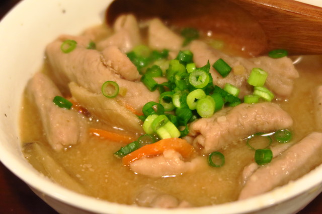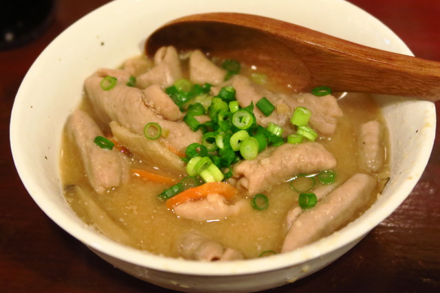 濃いめの味噌味で煮込んであります。モツ、やわらかい。