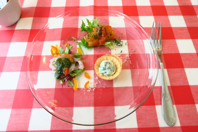 サーモンのマリネやチーズのタルトなど、丁寧に作ってあり、おいしい。