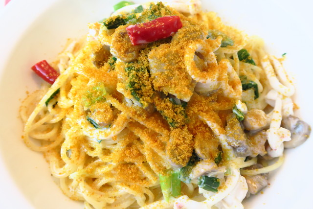 カラスミがたっぷり! かかっていて、濃厚なクリームソースに絡みます。