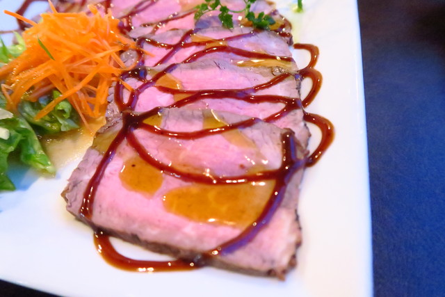 ソースはバルサミコで。お肉はしっとりなめらかで、おいしいです。