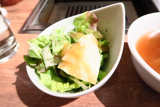 サラダはシンプルに、レタスなど。スープもコンソメだったと思います。
