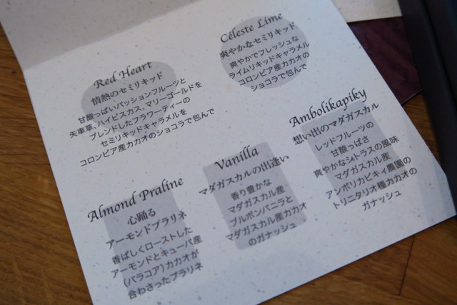 5種類のショコラにはそれぞれ名前とコンセプトが。