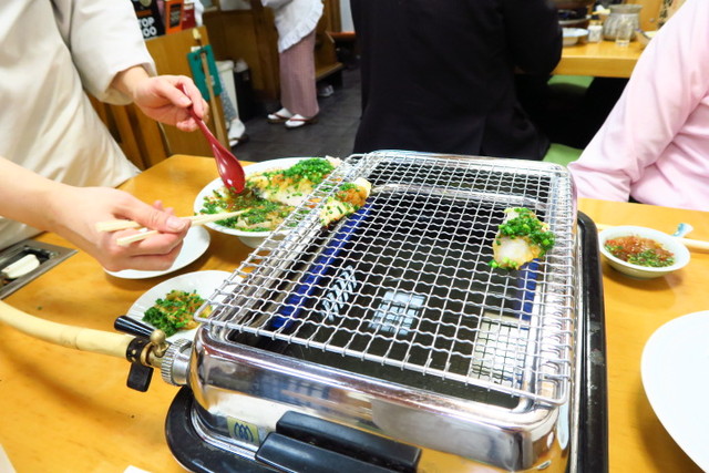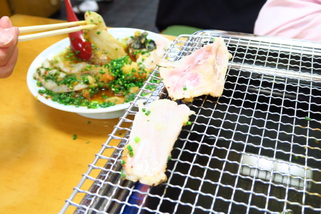 焼き河豚は、お店のおばちゃんが焼いてくれます。